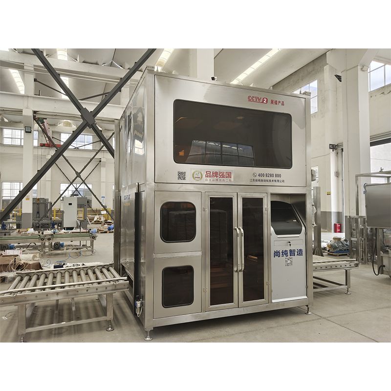 Бұл машина 200 л төрт бөшкеге арналған паллетке, тонна химиялық шикізатты орау үшін интеллектуалды орау жүйесіне арналған, 200 л барабандарға (соның ішінде паллеттерге), тонна барабандарды қаптауға арналған. Көрнекі іздеуді қолдану 200L төрт баррель паллетке, тонна бөшкеге автоматты қақпақты ашуға, автоматты суға түсуге, автоматты жылдам толтыруға, автоматты ағып кетуге, автоматты жабуға және басқа да бүкіл процесті автоматты орауышқа қол жеткізе алады.